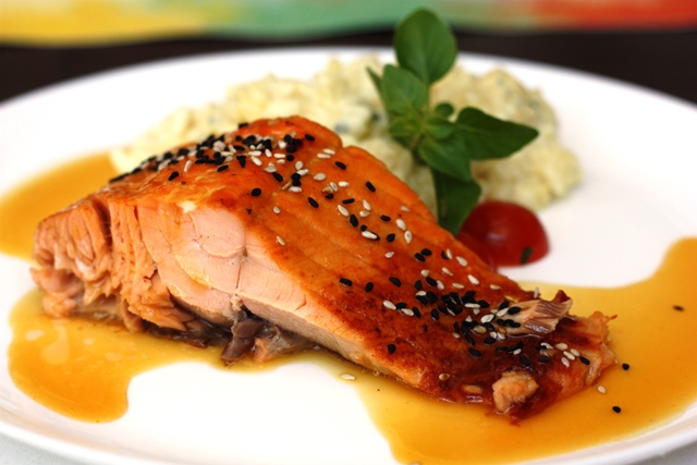 Salmão e risoto – O queijo gorgonzola atribui sabor aguçado ao arroz arbóreo (grão italiano) cozido no caldo de legumes. Para acompanhar, vai o peixe salmão no molho de maracujá com gergelim.