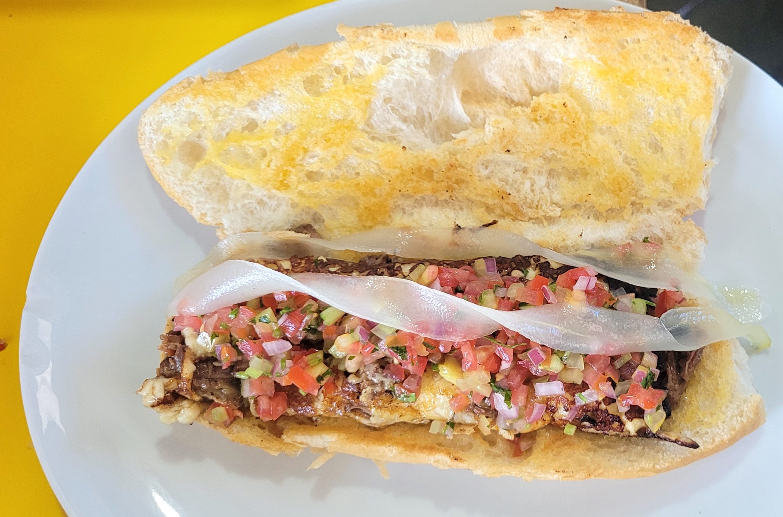 A carne de carneiro é embebida no próprio caldo, recebe purê de batata, vinagrete (minúsculo), e, por fim, é envolvida no queijo coalho e picles de pepino. É servida no pão francês chapeada na manteiga e para agregar mais sabor, tem o molho batizado de “invocado” pelos camelôs, que é maionese de leite com cenoura, beterraba e limão.