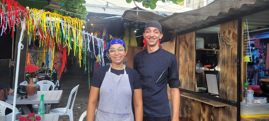 Irmãos empreendedores: Rutiele e o chef Williames na barraquinha no camelô da Praça dos Palmares