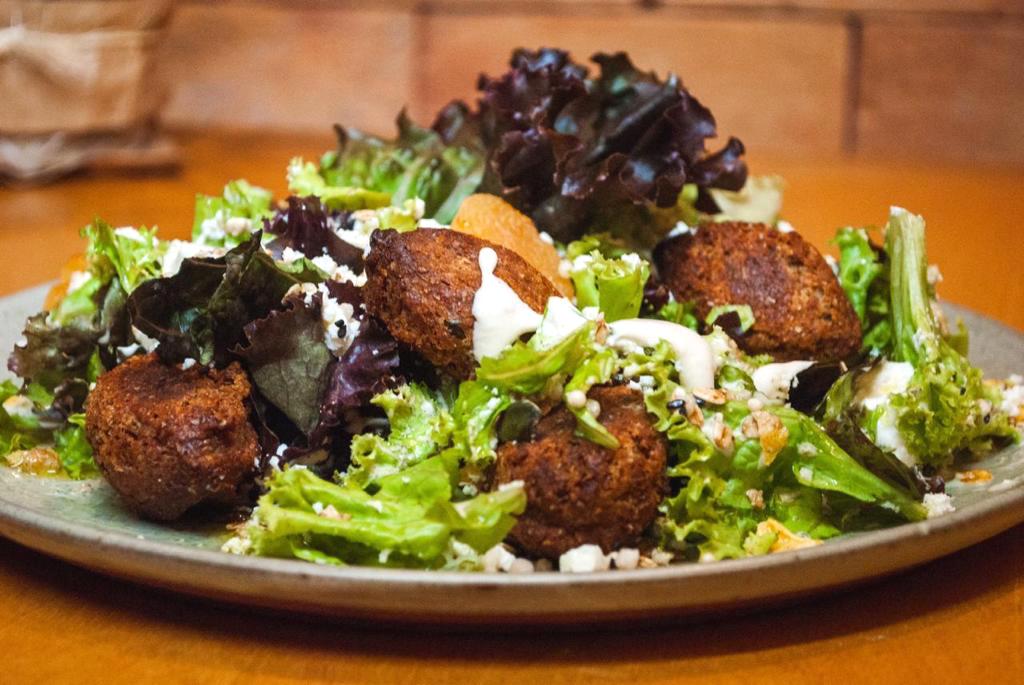 Salada Árabe com quibe produzido na cozinha da OLiva