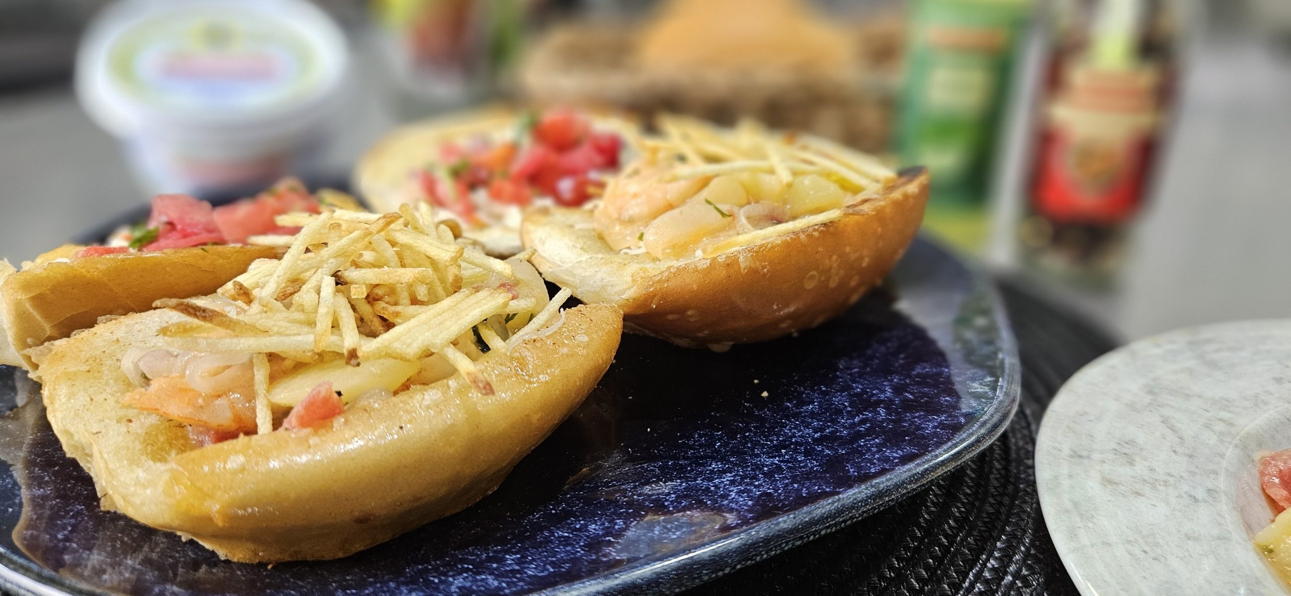 Sanduíche de camarão com produtos Pindorama
