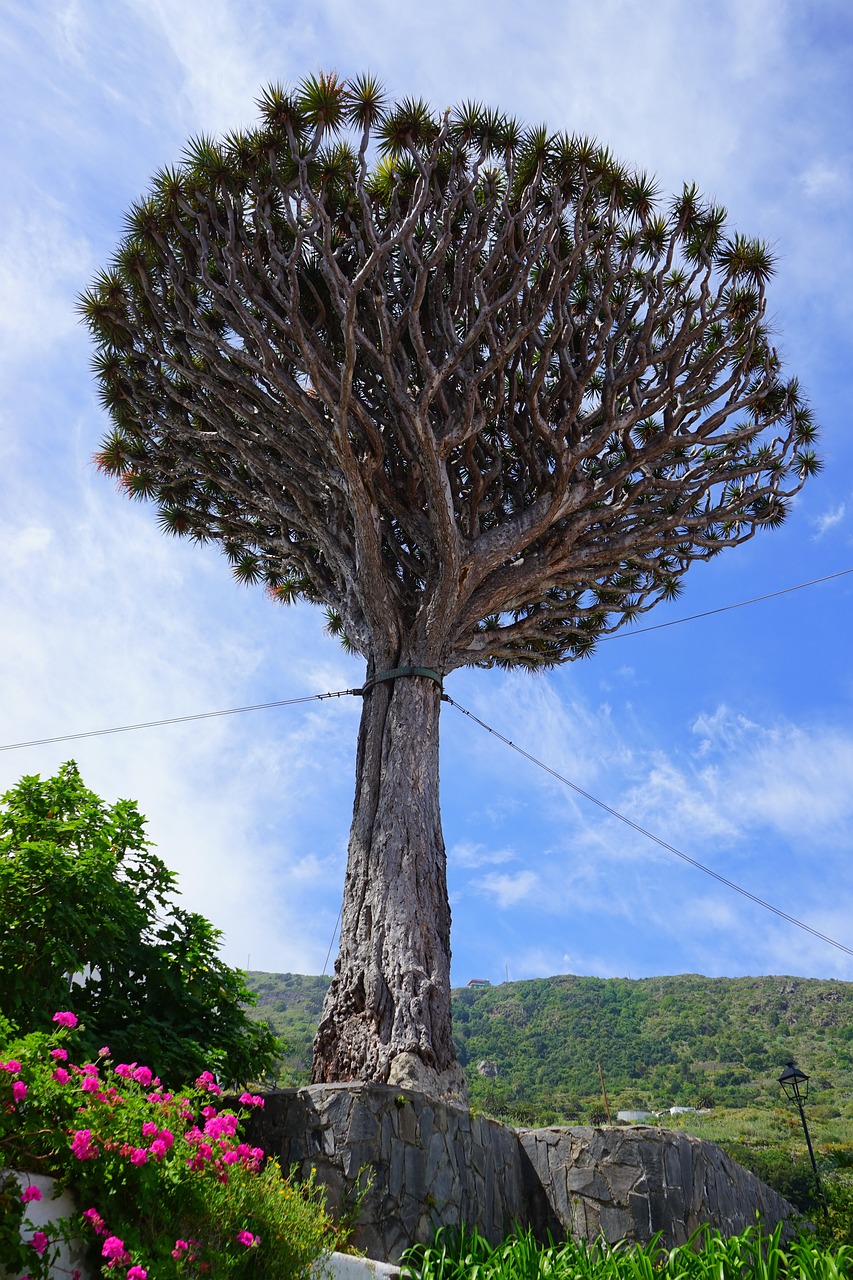 Originária da pequena ilha de Socotra, no oceano índico, a sangue do dragão ou Dracaena cinnabari é uma árvore de constituição um tanto quanto incomum, formada por um tronco bastante ramificados em forma de rosetas, com aspecto peculiar, de folhas densas e grossas, formando uma espécie de guarda-chuva. Sua copa projeta uma sombra que transmite sensação de proteção, como se estivesse sendo acolhido e abraçado, principalmente na região desértica de sua origem.