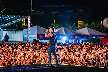 Sucesso com mais de 30 anos de carreira, a dupla Zezé e Luciano relembrou músicas que marcaram os anos 90 e colocou todo mundo para se emocionar debaixo de muita chuva. Já o fenômeno Nadson, o "Ferinha", trouxe as canções atuais e viveu um dos grandes momentos da noite, com o público em êxtase, sabendo de cor cada trecho das músicas.