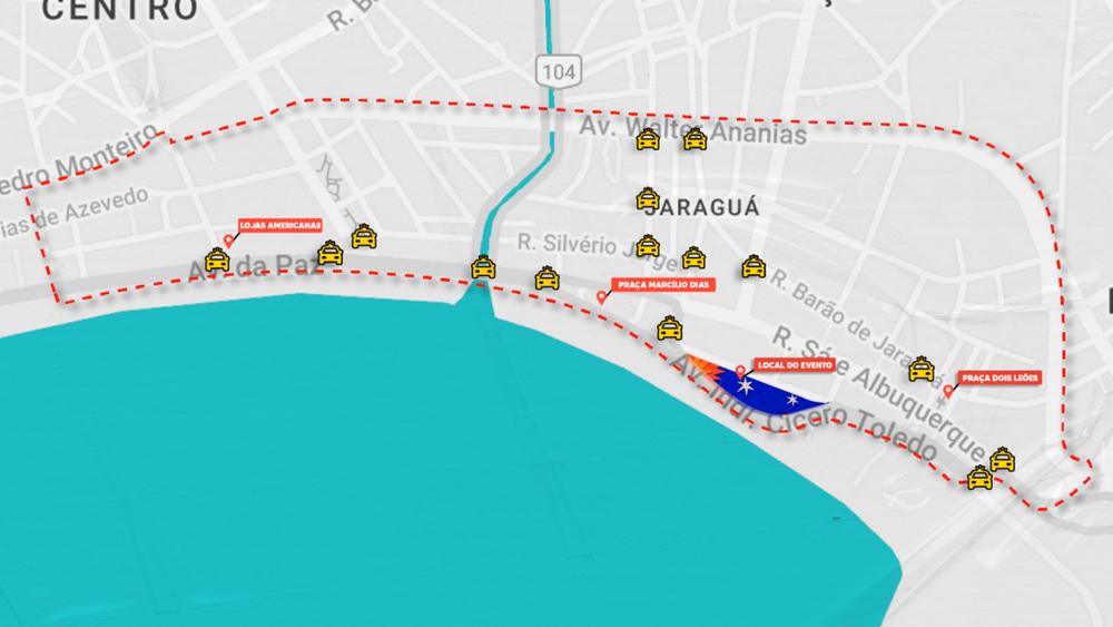 O órgão orienta que quem for à festa utilize o transporte público que terá uma programação especial. "Há outras modalidades de transportes regulamentados, a exemplo de táxis e mototáxis, que terão pontos de embarque e desembarque nas proximidades da Praça Marcílio Dias. Já as modalidades por aplicativos poderão embarcar nas proximidades da Praça Dois Leões e Mercado de Jaraguá", traz o DMTT.