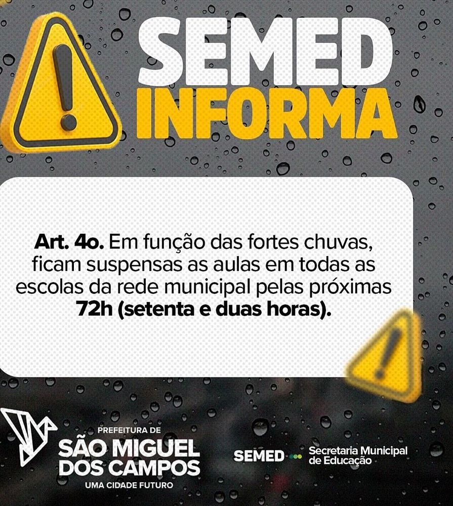 Além do decreto de emergência, foi suspensa as aulas em todas as escolas da rede municipal de ensino.