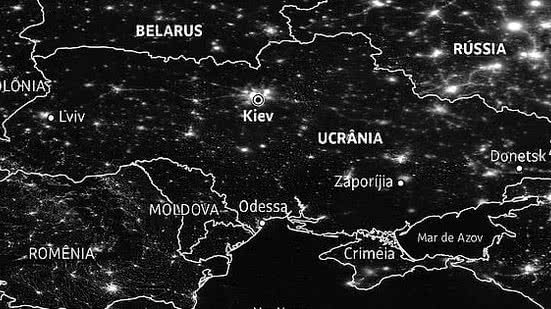 Imagens de satélite da Nasa mostram um dos impactos da guerra na Ucrânia no cotidiano do país, que ficou praticamente sem luz após a invasão russa, iniciada em 24 de fevereiro.
