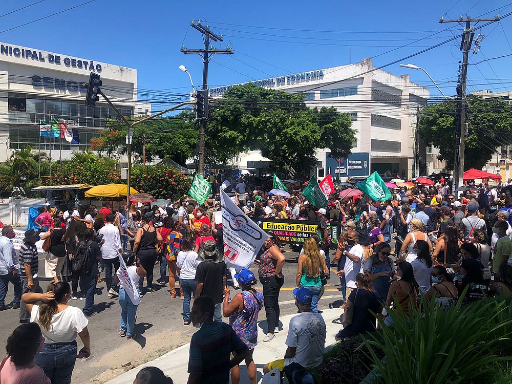 Por volta das 10h, o grupo, que levou cartazes e faixas para pedir valorização do prefeito, bloqueou a Avenida Pedro Monteiro, em frente à secretaria, o que deixou o trânsito lento na região.