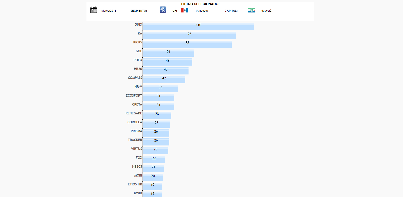 No próximo post traremos o ranking completo de vendas em Alagoas não só no segmento de automóveis mas também de motos, comerciais leves e caminhões.