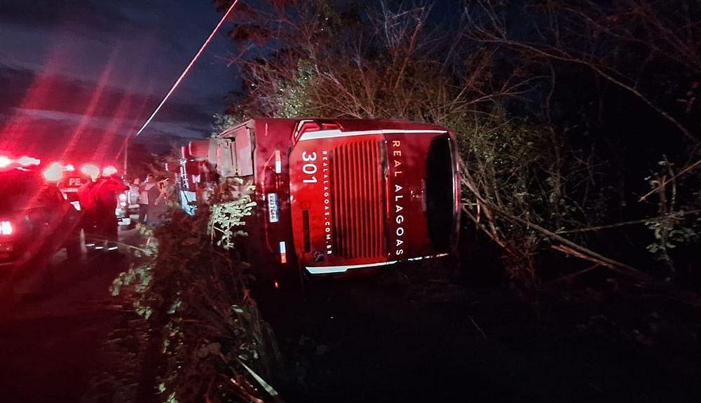 A Real Alagoas de Viação lamenta o acidente que resultou no tombamento de um de seus ônibus na BR-101, entre Flexeiras e Joaquim Gomes (AL), ocorrido na madrugada deste sábado (17).