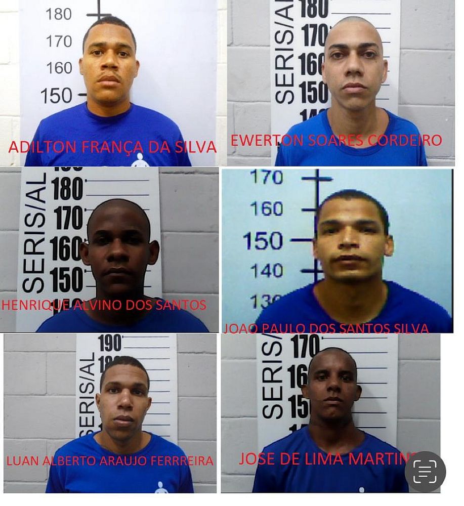 Os nomes dos seis detentos que ainda são procurados foram divulgados pelas Seris. São eles: Luan Alberto Araújo Ferreira, José de Lima Martins, João Paulo Santos Silva, Henrique Alvino dos Santos, Ewerton Soares Cordeiro e Adilton Franca da Silva.