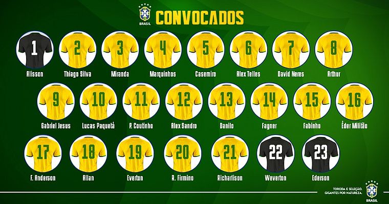 Para a disputa dos amistosos de março, contra Panamá e República Tcheca, a Seleção Brasileira já tem a sua numeração oficial definida. A divulgação foi realizada nesta quinta-feira (21). O alagoano Roberto Firmino, atacante do Liverpool, vai vestir a camisa número 20. Veja a numeração completa abaixo.