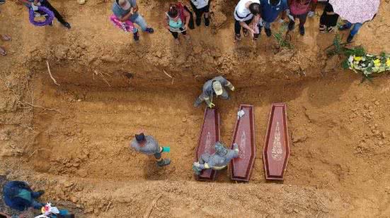 Diante do colapso no sistema de saúde e de uma explosão no número de enterros, a Prefeitura de Manaus está empilhando caixões em uma vala comum para poder dar conta de todos os sepultamentos das vítimas do novo coronavírus.