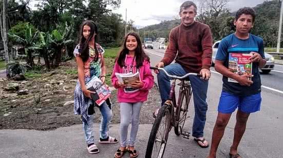 Sem computador e nem mesmo internet em casa, para que seus filhos possam acompanhar as aulas à distância, ele pedala 14 km até uma cidade próxima para buscar as tarefas pessoalmente.
