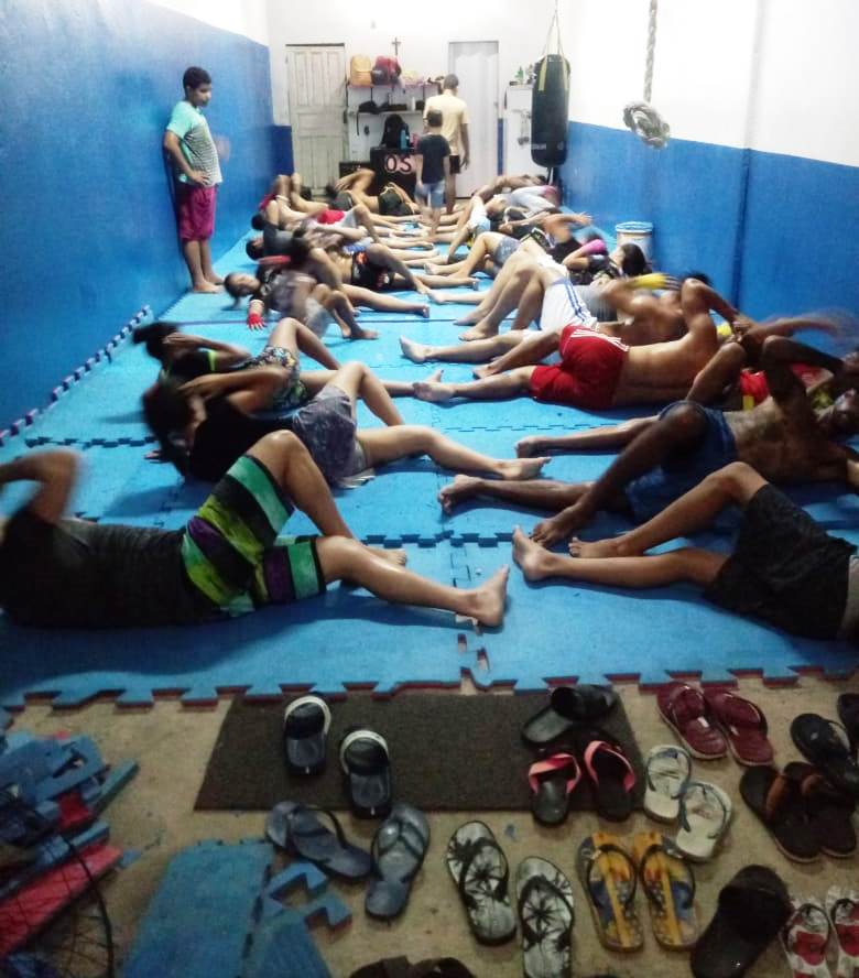 | Academia foi improvisada na casa de um ex-aluno, que apoia a ação dos instrutores / Cortesia ao TNH1 |