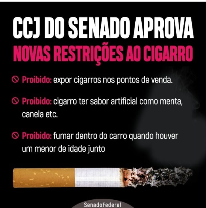 Proibição da exposição nos pontos de venda, mudanças nas embalagens de cigarros, eliminação de substâncias que conferem sabor e aroma a esses produtos, além do enquadramento do ato de fumar em veículos com menores de 18 anos como infração de trânsito. Esse conjunto de medidas pretende reforçar o desestímulo ao contato de crianças e adolescentes com o fumo e está reunido no Projeto de Lei do Senado (PLS) 769/2015, aprovado no dia 3 de ejulho, na Comissão de Constituição, Justiça e Cidadania (CCJ). Se não houver recurso para análise do Plenário, a proposta segue para a Câmara dos Deputados.