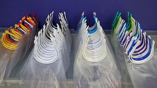 A corrida agora é contra o tempo. Até sexta-feira (10), 50 indústrias do país vão entregar 500 mil máscaras de acrílico (face shield) para profissionais de saúde. Semelhantes a escudos contra o coronavírus, esses materiais se tornaram essenciais nessa época de pandemia, já que protegem uma área maior do rosto. A expectativa é que também sejam produzidas luvas e toucas.