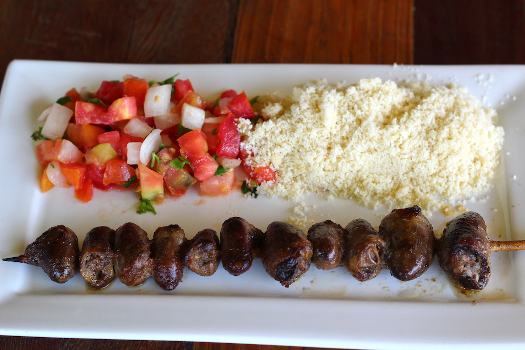 O restaurante é democrático. Tem prato para uma, duas e quatro pessoas. O elenco do cardápio é extenso, são mais de 40 itens, entre, guisados, grelhados, macarronada, lasanha, petiscos, e claro, os tradicionais churrasquinhos de gato, a exemplo do coração de galinha com farofa e vinagrete, que é dos deuses. É preciso ir mais de um dia para viajar pelos sabores, e em breve entrará em cena o café regional.