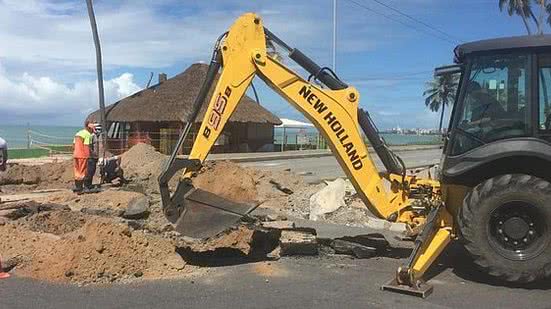 As obras tiveram início nessa terça-feira (2). Em razão do grande volume de chuva que ocorreu na sexta-feira (29) e sábado (30), a vazão da galeria não suportou e rompeu o tubo que chega até a saída da praia.