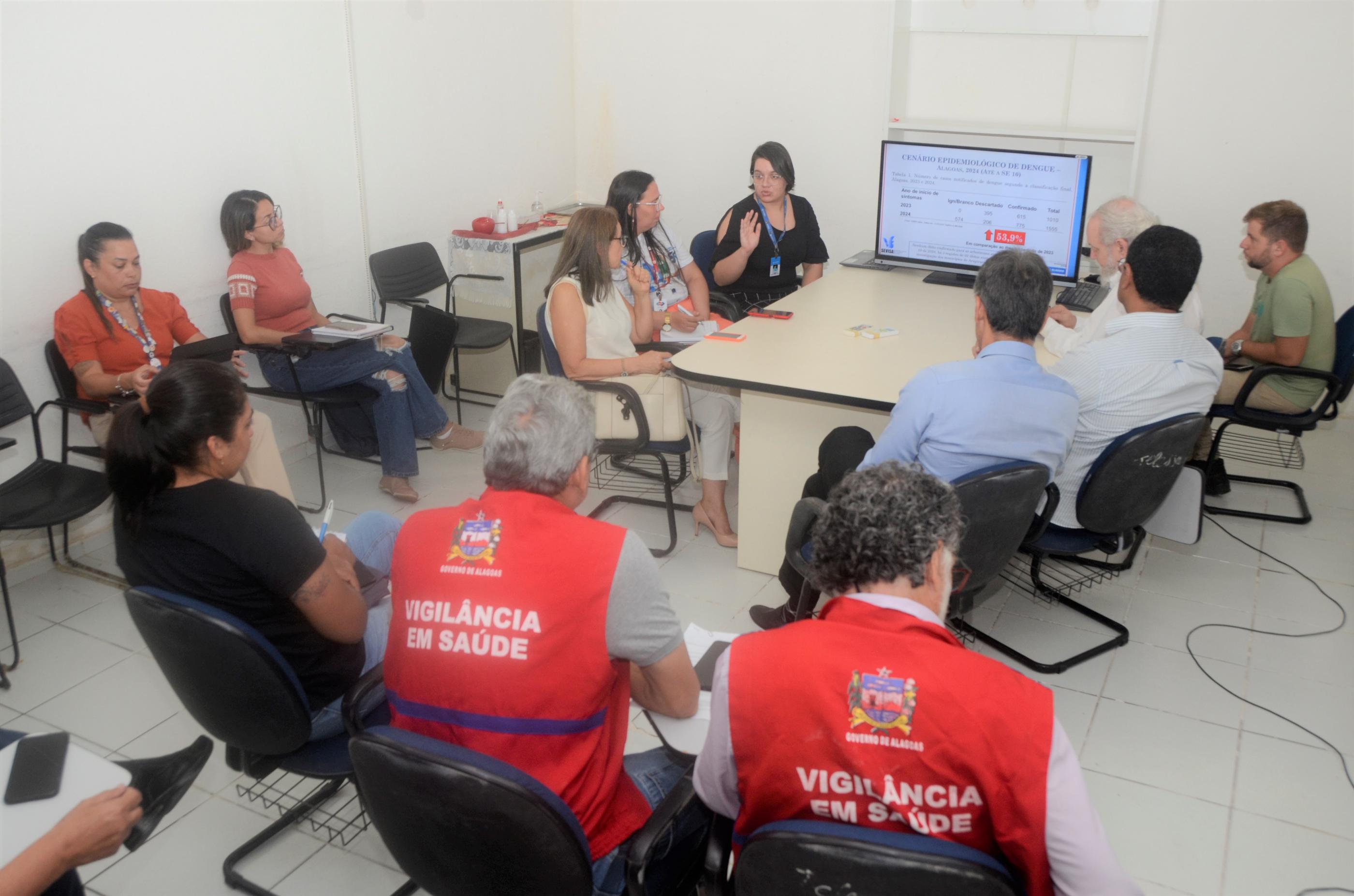 A Secretaria de Estado da Saúde (Sesau), por meio do Núcleo Técnico de Emergência para a Dengue, realizou, nesta segunda-feira (11), uma reunião para apresentar os novos dados da doença em Alagoas, que apontam um crescimento de mais de 53% no número de casos notificados no Estado. O encontro ocorreu no auditório da Gerência de Atenção Primária (GAP) da pasta, situado no bairro Jaraguá, em Maceió, e reuniu representantes das Vigilâncias em Saúde e Controle das Doenças Transmissíveis.