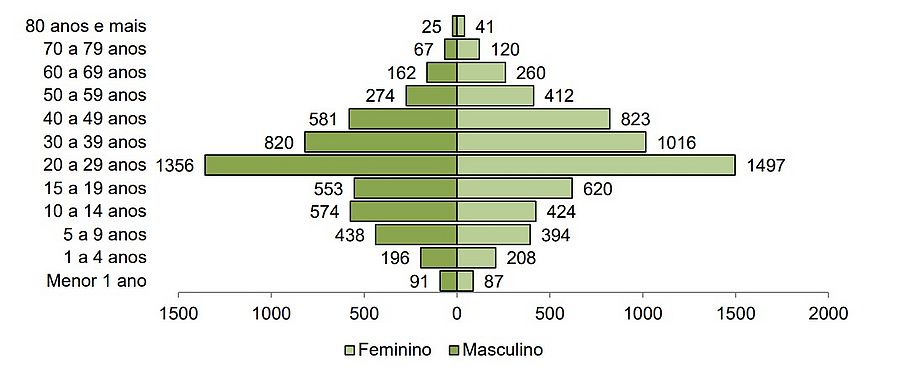 Entre os casos prováveis da doença, as mulheres aparecem na frente com 53,5% do total. Já a faixa etária com mais destaque no quesito é de pessoas entre 20 e 29 anos (25,8%). E a que menos possui registros é a acima de 80 anos (0,6%). Conforme a tabela abaixo: