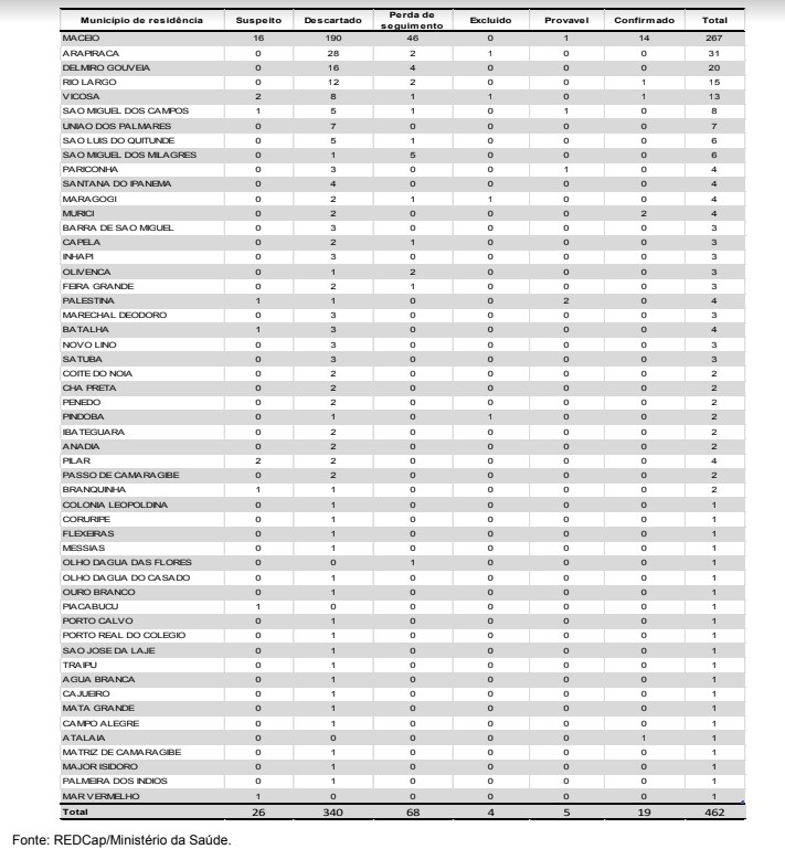 Até esta terça-feira foram notificados 462 casos suspeitos de varíola dos macacos. dos quais, 340 foram descartados. Foram excluídos 04 casos por não atenderem definição proposta pelo Ministério da Saúde dos seguintes municípios: Arapiraca, Pindoba, Maragogi e Viçosa. Veja o boletim completo.