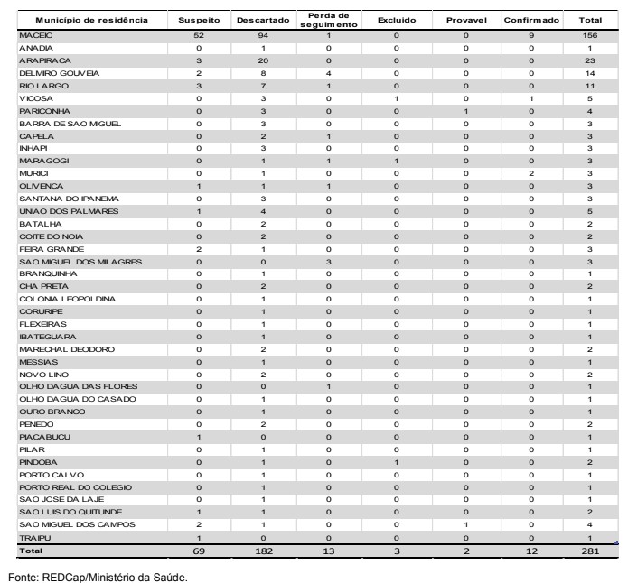 Após confirmar o 12º caso de monkeypox, a varíola dos macacos, em Alagoas, a Secretaria de Estado da Saúde (Sesau) segue investigando 69 casos suspeitos da doença no estado. Até esta terça-feira, 20, jáo foram notificados 281 casos suspeitos da doença, dos quais 182 foram descartados. Maceió é o município que possui o maior quantitativo de casos, 156 ao todo, seguido de Arapiraca com 23 e Delmiro Gouveia com 14. Foram excluídos três casos por não atenderem definição proposta pelo Ministério da Saúde dos seguintes municípios: Pindoba, Maragogi e Viçosa. Quanto aos casos confirmados, a capital alagoana concentra a maioria dos testes positivos, nove até agora. Dois casos foram registrados em Murici e um em Viçosa. Veja boletim completo.