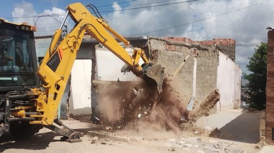 Sete residências foram demolidas na comunidade do Bolão, em Maceió, devido ao risco de colapso, após a desocupação dos imóveis que estavam a menos de um metro de uma barreira instável.