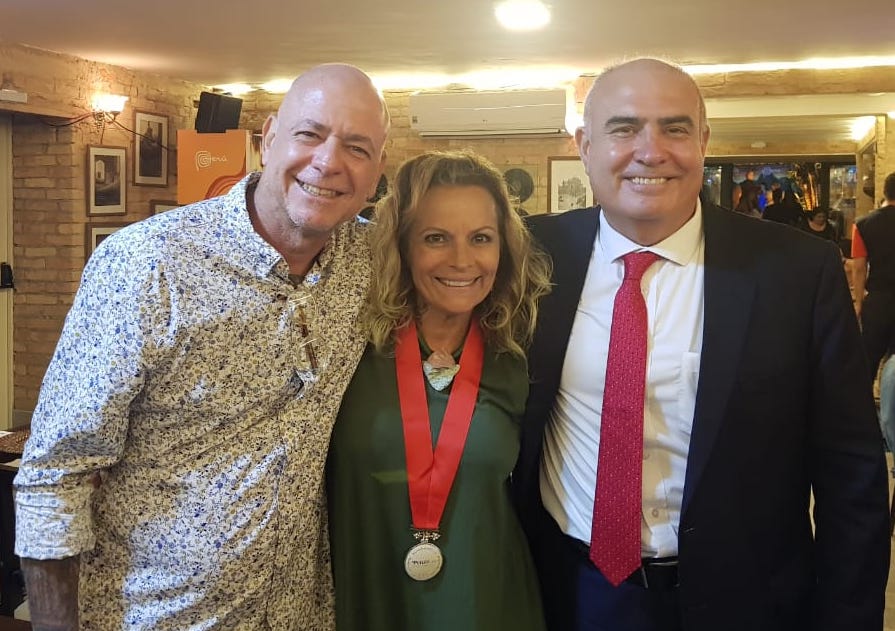 A chef Simone Bert com seu esposo, José e o Embaixador do Peru, Javier Yepez