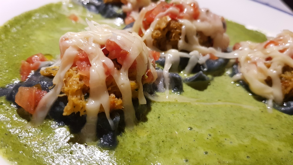 Siri – Nossa chef Simone Bert, desde menina, é apaixonado por siri de coral. Ela adora destrinchá-lo. Como o siri faz parte da sua memória efetiva, ela criou uma receita nova, o rondeli negro de siri com molho de espinafre. Por sinal, adorável.
