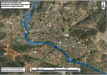 A Superintendência de Recursos Hídricos da Semarh (SRH) utilizou como base o mapa com a provável mancha de inundação em caso de rompimento da SRH de Pernambuco para fazer o recorte dos municípios alagoanos. Essas informações são importantes para que a Defesa Civil do Estado e dos municípios possam aperfeiçoar o trabalho de evacuação dos povoados ribeirinhos nos municípios de Santana do Ipanema, Poço das Trincheiras e Batalha, caso haja necessidade.