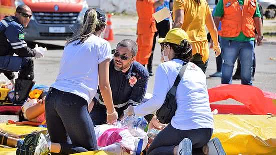 Para comemorar o Dia do Socorrista, celebrado em 11 de julho, e encerrar as atividades da Capacitação de Resposta para Incidentes com Múltiplas Vítimas, a Secretaria de Estado da Saúde (Sesau), em parceria com a Força Nacional do SUS, do Ministério da Saúde (MS), promoveu uma grande simulação realística. A meta é treinar os profissionais de órgãos que possam ser envolvidos em situações de desastres e catástrofes. O evento foi realizado neste sábado (6), no estacionamento do bairro de Jaraguá, em Maceió.