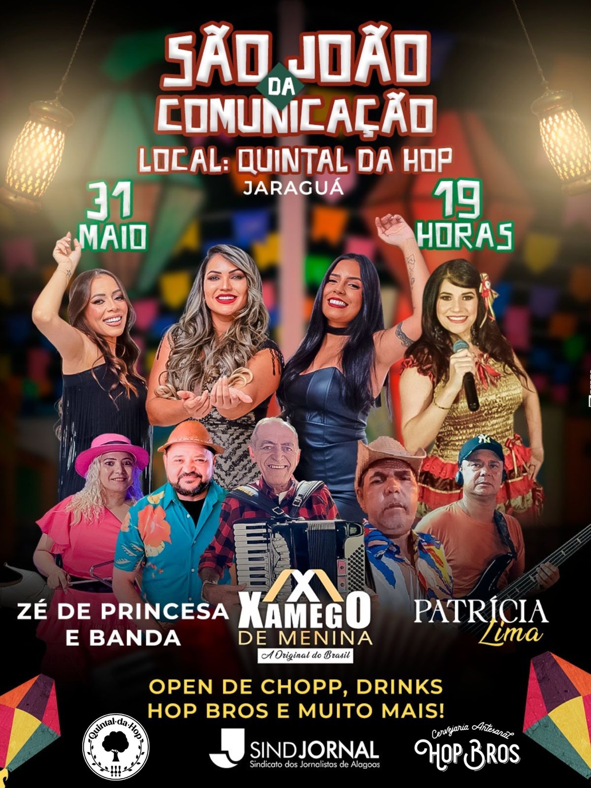 O evento será realizado no Quintal da Hop, no bairro do Jaraguá, em Maceió, e contará com uma programação musical para ninguém ficar parado. Entre as atrações confirmadas estão Zé de Princesa & Banda, o tradicional grupo Xamego de Menina e a cantora Patrícia Lima, que prometem colocar todo mundo pra dançar até a madrugada.