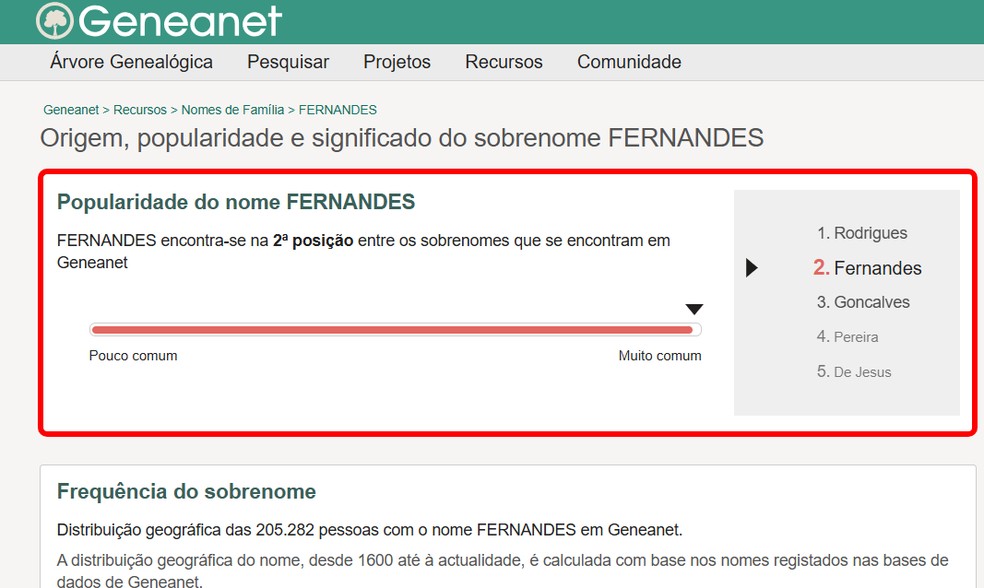 Passo 2. Veja em destaque o nível de popularidade do sobrenome entre aqueles cadastrados na plataforma;