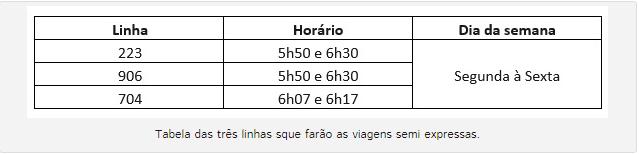 “O objetivo deste modelo de viagem é fazer com que os passageiros cheguem mais rápido ao seu destino. Para isto, tanto o embarque como o desembarque em algumas paradas do trajeto serão limitados. Teremos um período experimental de 90 dias para avaliar a aceitação do público e realizar levantamentos técnicos. Logo após este período, as viagens semi expressas poderão ser definitivas”, declara a diretora do SIMM, Paula Isanelle.