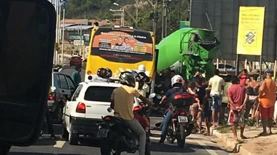 O acidente - Uma pessoa morreu e outra ficou ferida em um acidente de trânsito envolvendo um ônibus e uma motocicleta, em trecho da AL-101 Norte perto da entrada da Eco Via Norte, que liga o bairro de Guaxuma ao Benedito Bentes.