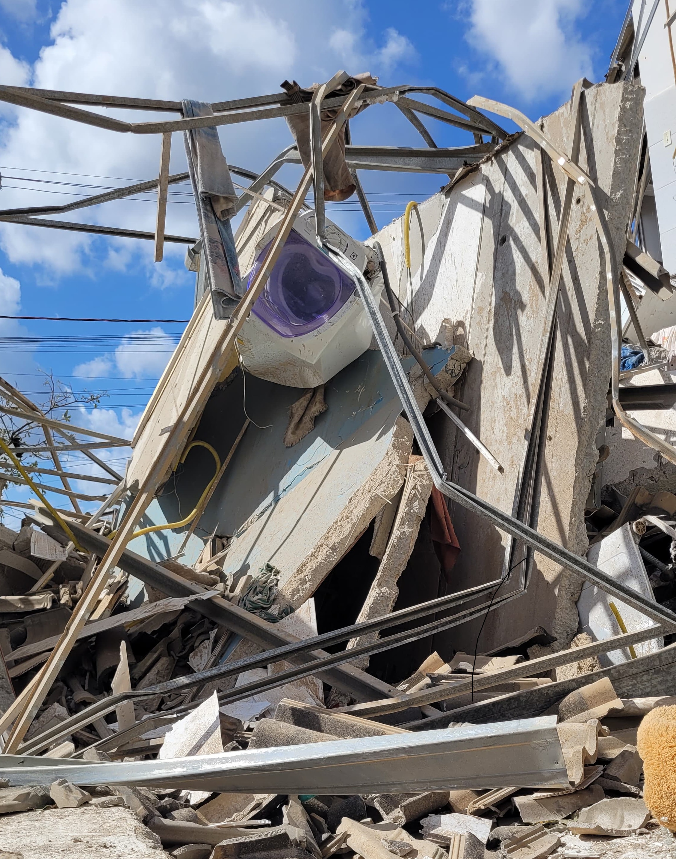 Imagens mostram máquina de lavar pendurada pelos escombros. Foto: Ascom CBM-AL