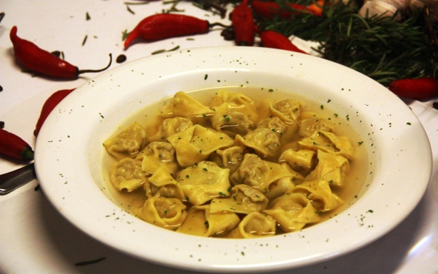 Maria Antonieta – A sopa de tornelini é singela, sua aparência não é convidativa, mas para a jornalista Aline Angeli, a iguaria tem um sentimento afetivo, lembranças de sua mãe lá do Rio Grande Sul, afinal no Sul, a sopa de origem italiana é bem apreciada. Esta massinha é produção própria da cozinha do chef Breno do restaurante. Imagine o trabalho que dá rechear cada uma com frango (90%) e carne suína (10%), cozida no caldo de frango. Sou fã de carteirinha. Leve e saborosa.