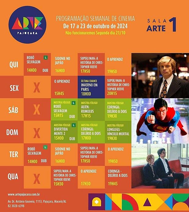 Em cartaz: Cinesystem (Parque Shopping), Kinoplex (Maceió Shopping) e Arte Pajuçara.