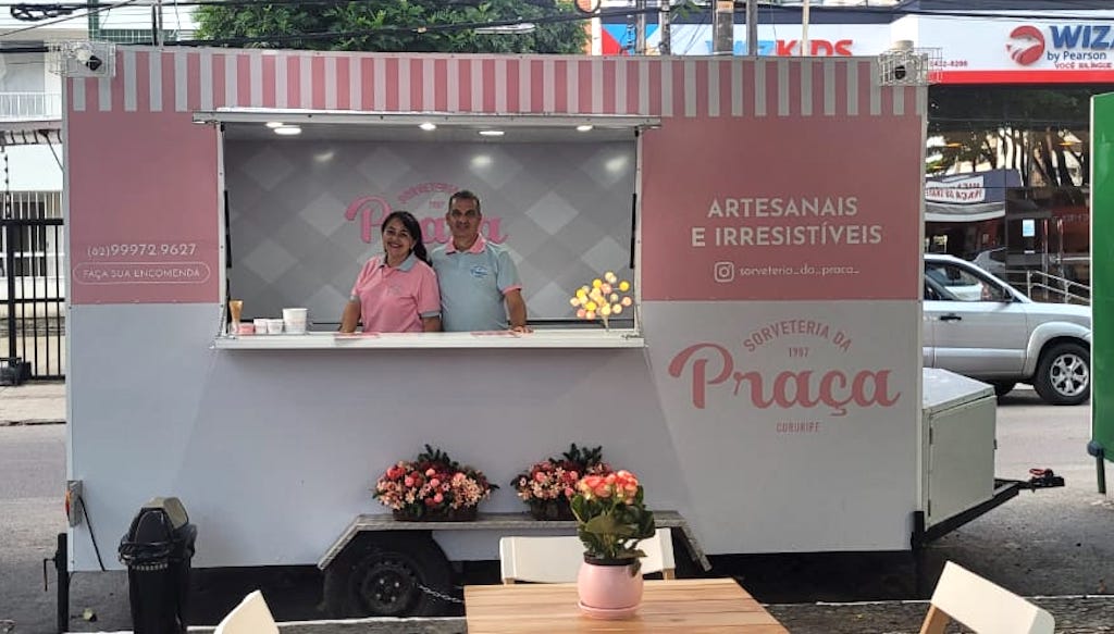 Quando a pandemia trouxe o desemprego para muita gente, também trouxe novas oportunidades, como é o caso do Roberto Porangaba casado com a filha da Lucia, Márcia Elias. O casal trouxe a história saborosa para Maceió no trailer bem charmoso, com flores na mesa, em resumo, o Sorvete da Praça é alagoano e dos bons.