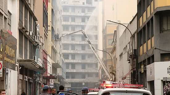 Continua alto o risco de desabar o prédio de dez andares atingido por um incêndio na região da 25 de Março, no centro da capital paulista, na madrugada de segunda-feira (11). .