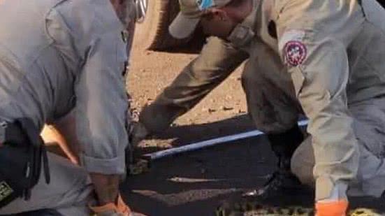 A captura do animal ocorreu por volta das 7h40 e mobilizou quatro bombeiros. Os militares foram acionados após funcionários da empresa verem a serpente atacando o cão. “O local em que ela estava, uma espécie de canal, não oferecia alimento, como peixes, por exemplo. Acredito que, por isso, ela tenha atacado o cachorro”, explica o tenente dos bombeiros Silvanei Barbosa Coelho.