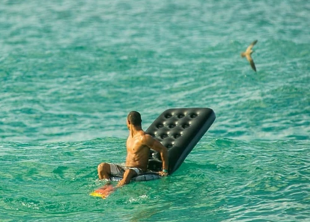 O surfista Buday Santos resolveu encarar o esporte de uma forma diferente. Nesta segunda-feira, 24, ele postou em suas redes sociais uma foto sua surfando em um colchão na praia da Cacimba do Padre, em Fernando de Noronha. “Agora sim a temporada está começando”, disse Buday.