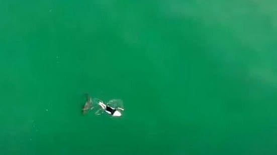 "Ouvi um respingo, um barulho, mas olhei em volta e não consegui ver nada", contou Wilkinson, que tem 32 anos. "Foi quando o drone desceu, e eu fui avisado sobre a presença do tubarão e de que devia voltar à praia. Só quando cheguei à costa e vi o vídeo percebi o quão perto ele estava. Parece que ele estava indo pegar minha perna, e por algum motivo mudou de ideia."