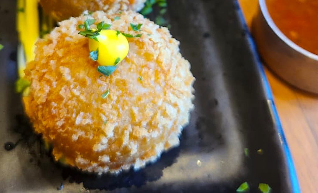 Bolinho de sururu com maionese de dendê do Engenho da Barra
