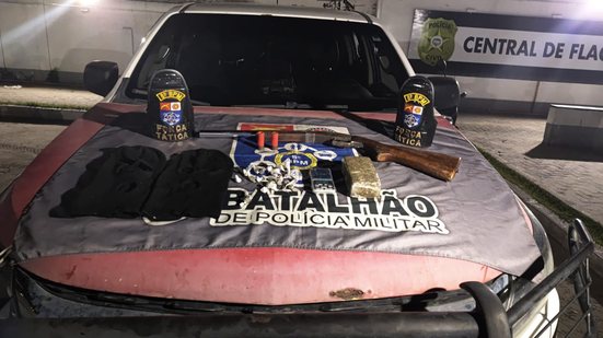 Ao todo foram recolhidos 434g de maconha, uma espingarda artesanal, duas munições, um celular e balaclavas, estas usadas para ele cobrir o rosto no momento dos delitos.