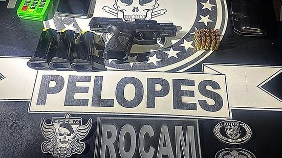 Com o homem, de 27 anos, a polícia apreendeu uma pistola 9 milímetros, três carregadores, 20 munições de mesmo calibre de arma, e uma maquineta de cartão de crédito.