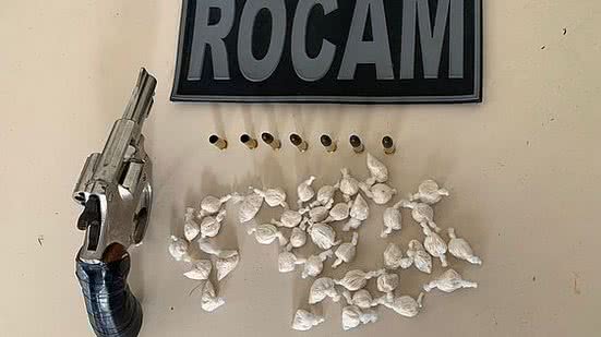 Ao todo, um revólver de calibre 22, cinco munições, e 40 bombinhas de cocaína, com aproximadamente 16g, que estavam no recipiente, foram recolhidos após buscas na região onde o material foi descartado pelo suspeito.