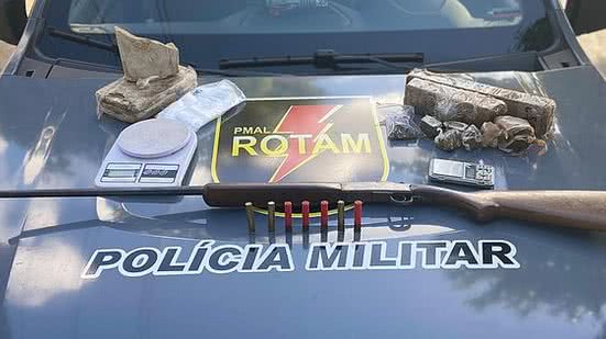 Durante a varredura no imóvel, os PMs da RP encontraram uma espingarda de calibre 36, com sete munições intactas. A arma de fogo também foi recolhida e levada para a delegacia, junto com o suspeito e outros materiais.