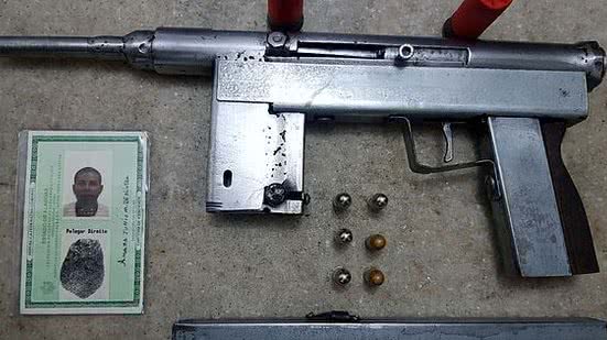 Amaro Junio Minervino de Oliveira, de 23 anos, foi revistado e acompanhado até a casa onde vive com a esposa. Ao fazer a varredura, a guarnição encontrou uma submetralhadora, além de peças que podem ser usadas na fabricação de armas artesanais.