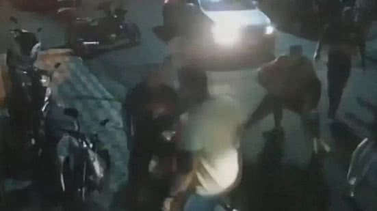 Imagens de uma câmera de segurança da rua mostram o suspeito tentando fugir do local, sendo capturado e agredido. Ele foi ferido com chutes e socos.